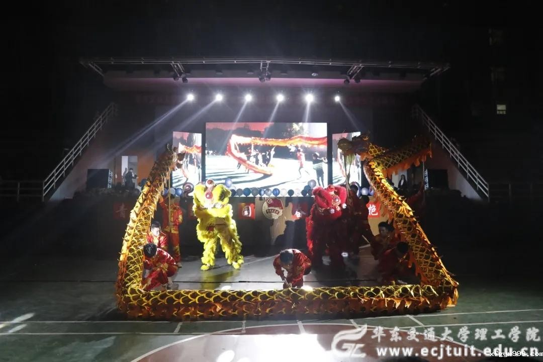 晚会中篇,张国迎为各分院优秀志愿者代表颁奖。他们在疫情期间,清洁消毒、值班检查、服务社区,展示了交理人应有的责任与担当。颁奖环节结束后,机电分院带来了舞龙舞狮表演。表演者们身穿舞狮服,手舞长狮,踢跳翻滚、立卧滚抖,活灵活现的表演赢得了满堂喝彩。
