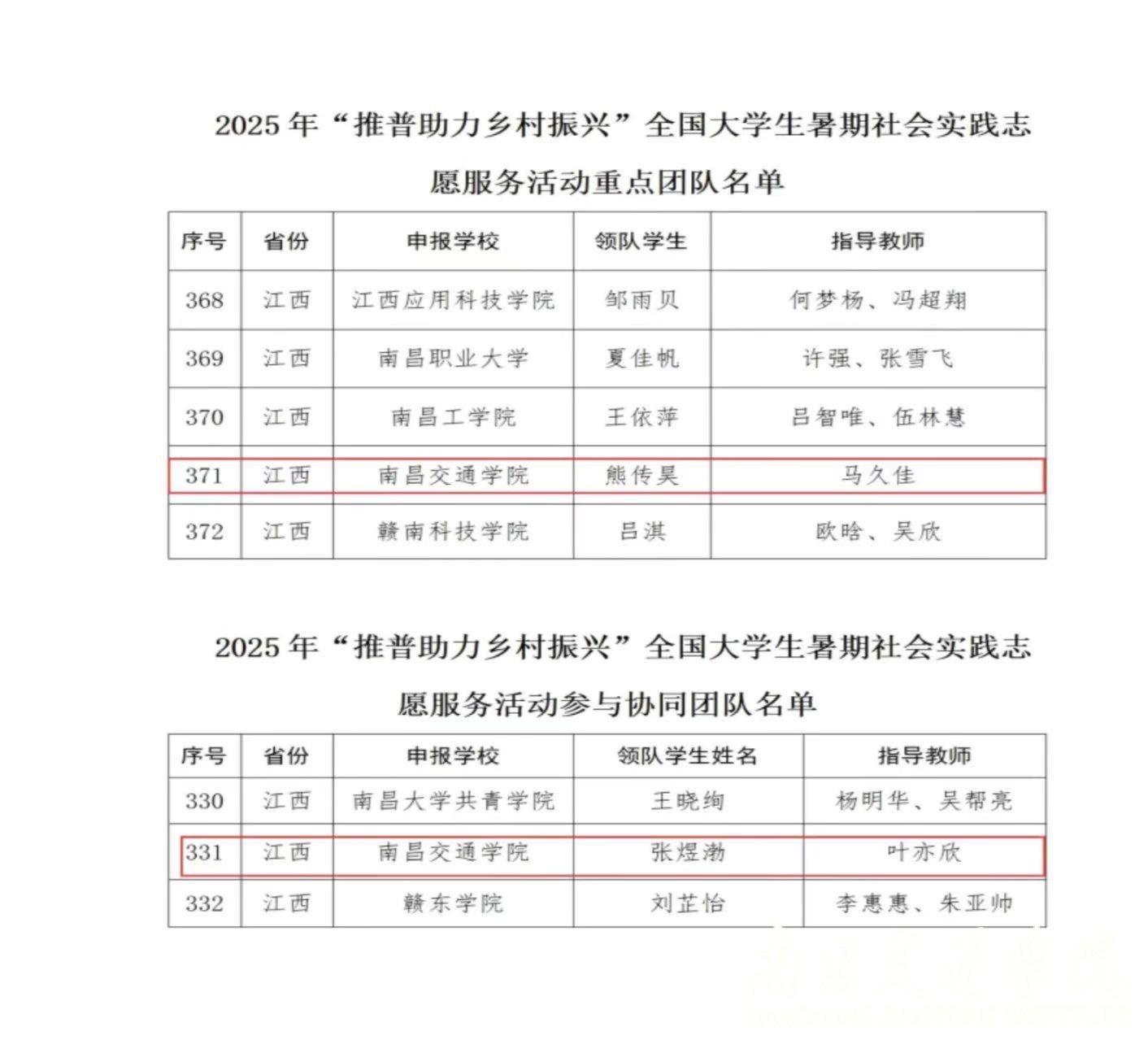 (教务处 邹新美报道)近日,教育部公布2025年“推普助力乡村振兴”全国大学生暑期社会实践志愿服务活动入选团队名单,由我校语言文字办公室、团委组织,团委老师马久佳、叶亦欣指导的2个团队分别入选重点团队和参与协同团队。