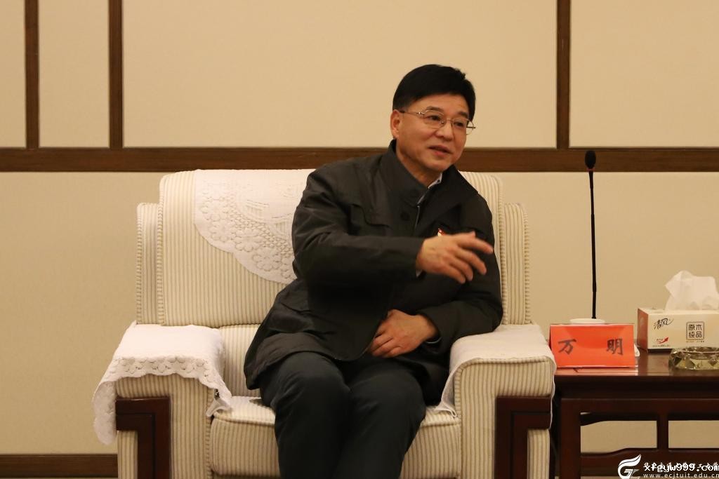 陈志胜代表学院对万明一行表示欢迎和感谢,他表示:“这次能够纳入华东交通大学党委一起开展主题教育,我们感到非常欣慰。不仅体现了党中央和省委对我们民办教育的重视,也体现了交大党委对我们的无比关心和支持。通过主题教育,我们全校师生,思想高度统一到‘为党育人,为国育才’‘办人民满意教育’的教育初心和使命上来,大家围绕‘教师在理工学院安心教书育人,学生在理工学院健康成长成才’,边学、边查、边改,取得了很多切实有效的成绩,全校师生也焕发出昂扬的斗志和崭新的面貌,形成了‘聚精会神干事业、凝心聚力谋发展、全心全意为师生’的良好氛围。”