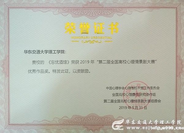 (心理咨询中心 吴辉良报道摄影)近日,第二届全国高校心理情景剧大赛落下帷幕。我校选送的剧目《忘忧酒馆》荣获优秀作品奖,心理健康教育与咨询中心教师吴辉良、俞佳荣获优秀指导教师奖。
