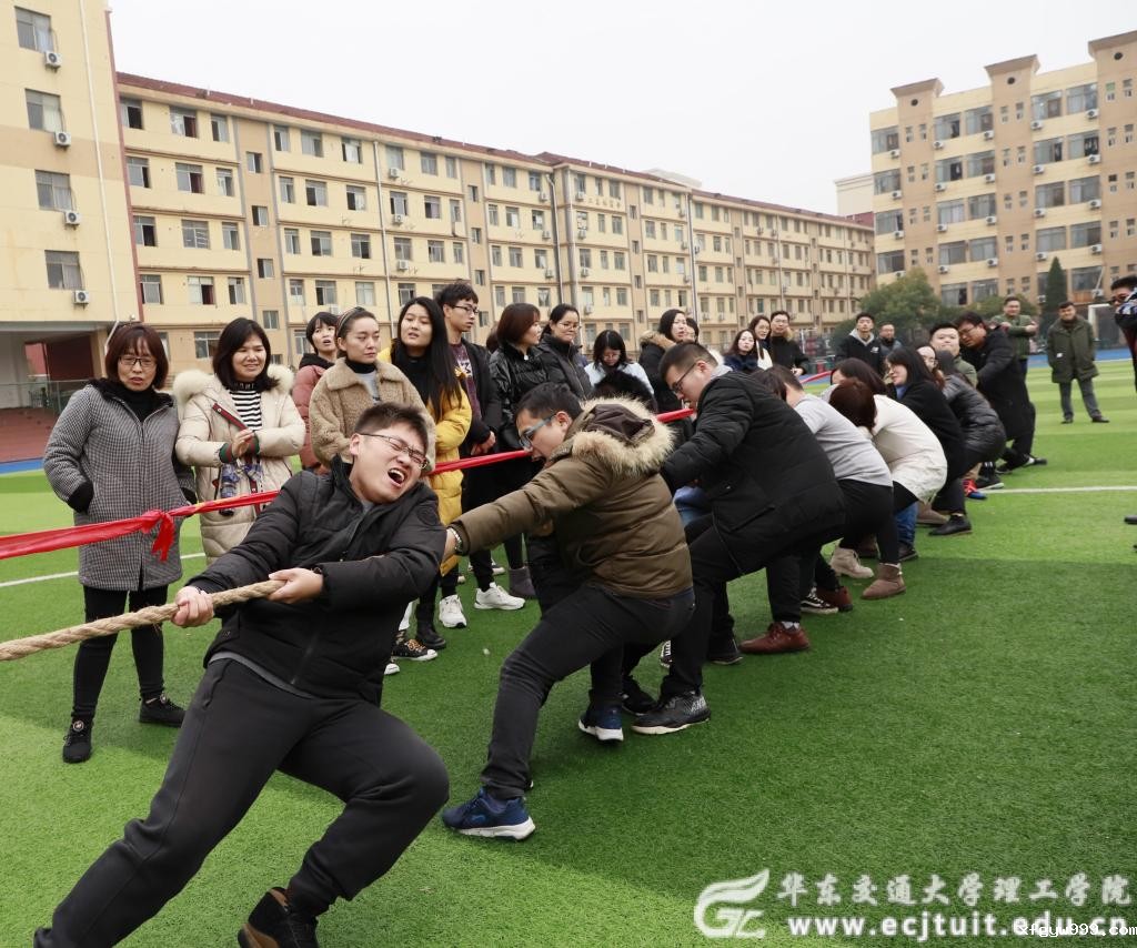 (工会 魏丽芝报道 )12月25日,我校第五届教职工“庆元旦迎新年”健身活动在田径场上举行,此次健身活动设有拔河比赛、蚂蚁过河、劈叉接力和徒步行走四个项目,既有脑力体力的锻炼,又可以促进教职工团结合作的精神,不但是智慧和体力的角逐,还是团结和协作的完美比拼。