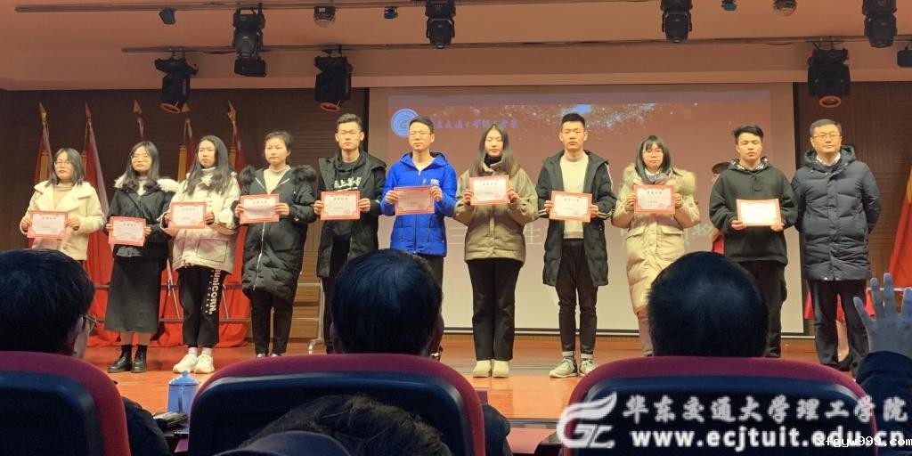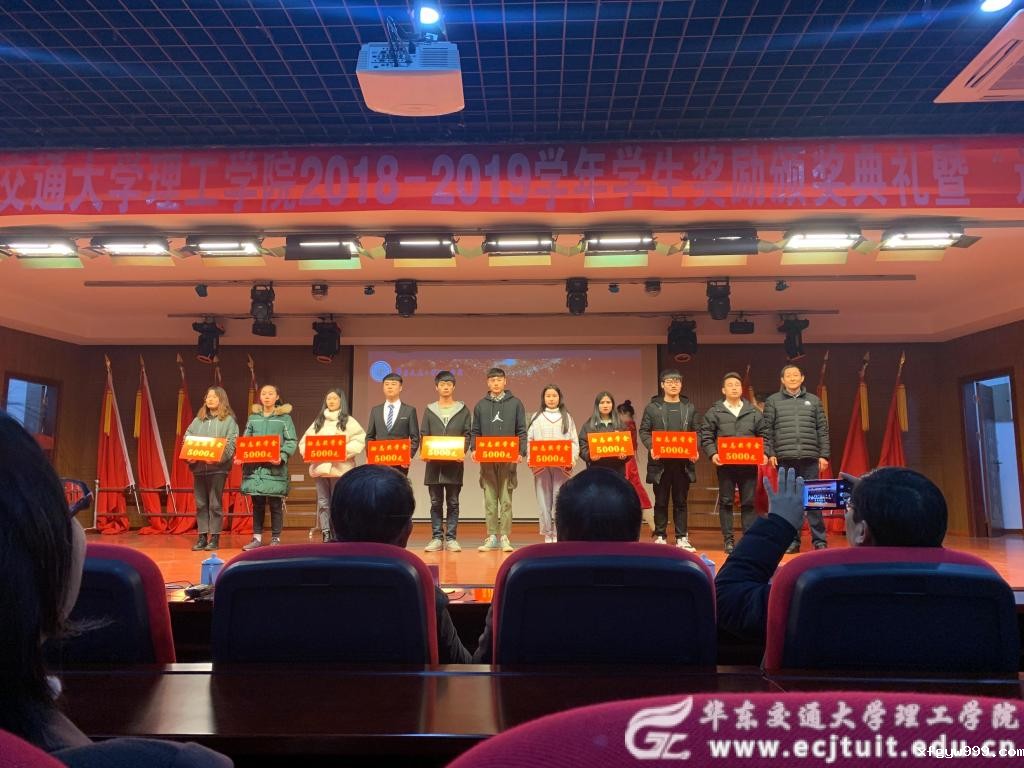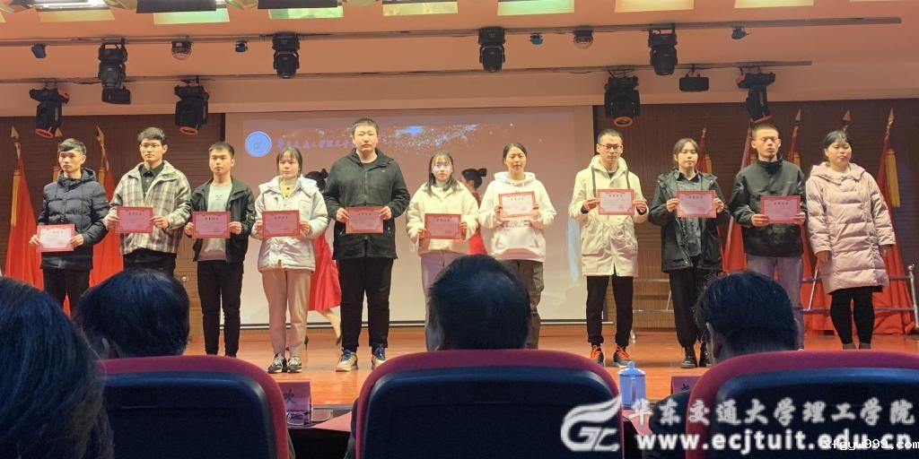 校长余欢为国家奖学金获得者代表颁奖。“永不气馁、越战越勇是他们的信念;把握方法、精益求精是他们的作风。青春的力量让他们昂首前行,青春的奋斗让他们慷慨激昂。他们刻苦努力、勤奋踏实,是学习上的巨人,他们用自强不息的精神、勤读力耕的行动,立己达人的态度,在交理的红土大地上树立起一面积极向上的精神旗帜。”随着颁奖词的宣读,获奖代表依次上台,余欢向他们颁发获奖证书,并向他们表示热烈祝贺。