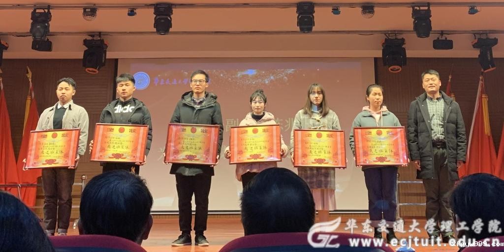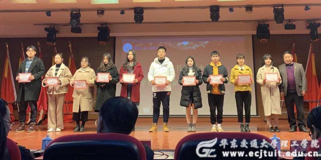 副校长严霖元为国家励志奖学金获得者代表颁奖;党委副书记何永峰为学校奖学金获得者颁奖;党委副书记彭彦华三好学生获得者代表颁奖;董事长助理尧刚华为优秀学生干部获得者代表颁奖;学工处处长张国迎为单项奖获得者颁奖;教务处副处长陈兆熙为先进班集体获得代表颁奖。