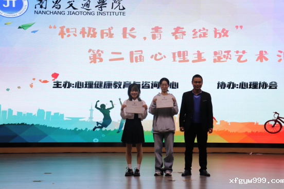 (心理咨询中心主任钱水芳为三等奖节目颁奖)