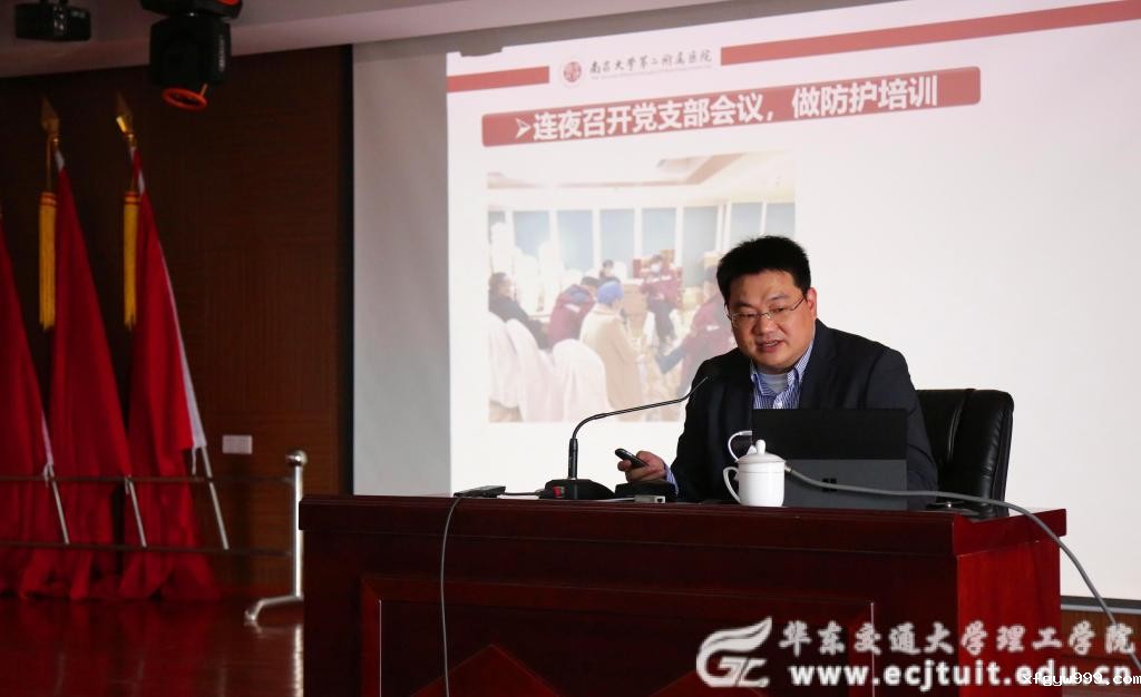 讲座中,龚园其结合亲身经历,通过一幅幅图片、一个个视频,向我校师生讲述了南昌大学第二附属医院抗击新冠肺炎援鄂国家医疗队的战疫故事。