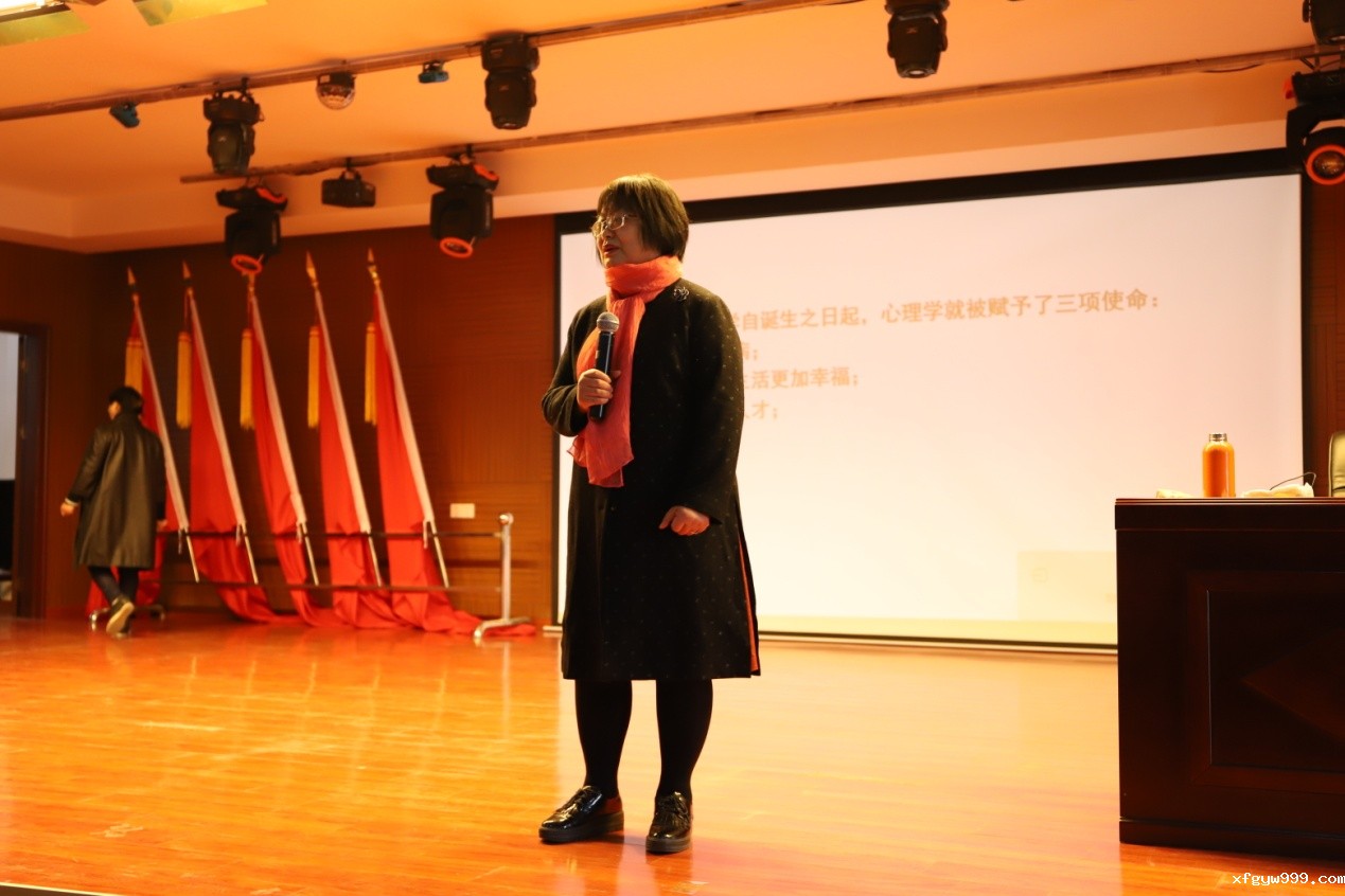 (心理咨询中心 吴辉良 报道 党委宣传部 贡悦 摄影)12月11日下午,南昌大学硕士生导师、副教授杨琳应邀走进我校“黄家湖讲坛”,为我校师生作《追寻生命的幸福感》的主题讲座。各分院各部门近600余名师生聆听讲座,心理咨询中心主任钱水芳主持讲座。