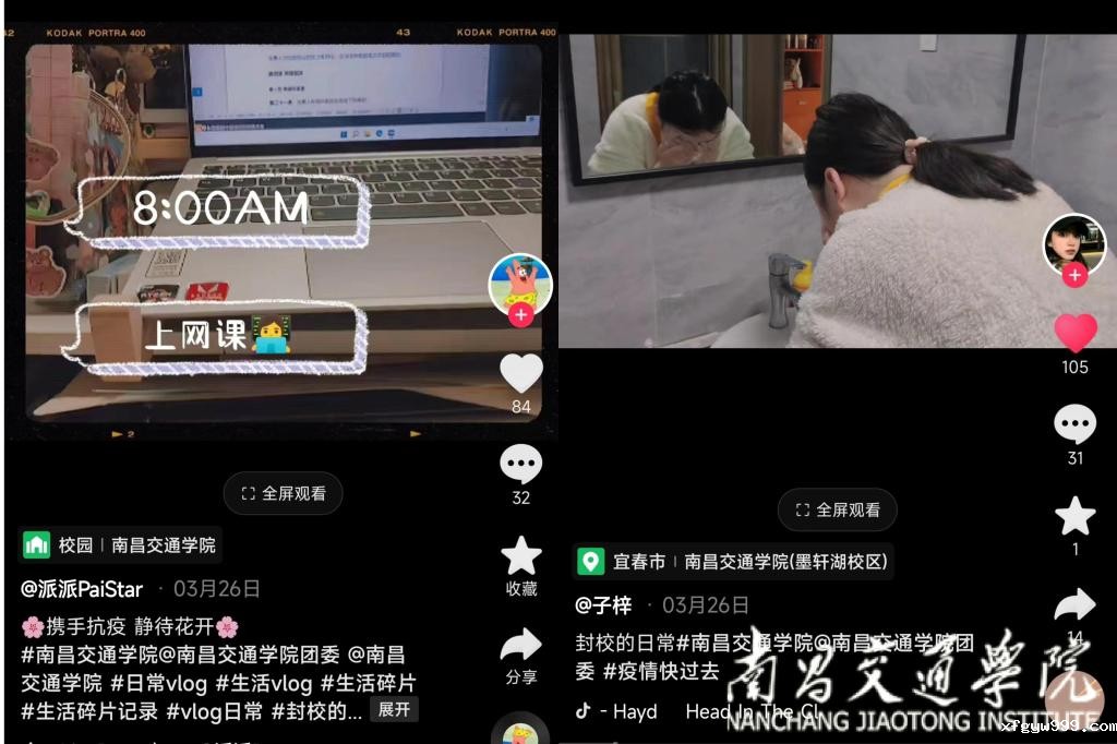生活方面,我校鼓励同学们用镜头记录生活点滴。宅寝期间,同学们利用各种设备将自己的宅寝生活制作成短视频,分享属于他们的创意宅寝生活。美食、运动、学习等形形色色的视频内容展现了他们积极乐观的心态,并通过此次活动传播爱和希望,共同抗疫,等待花开。