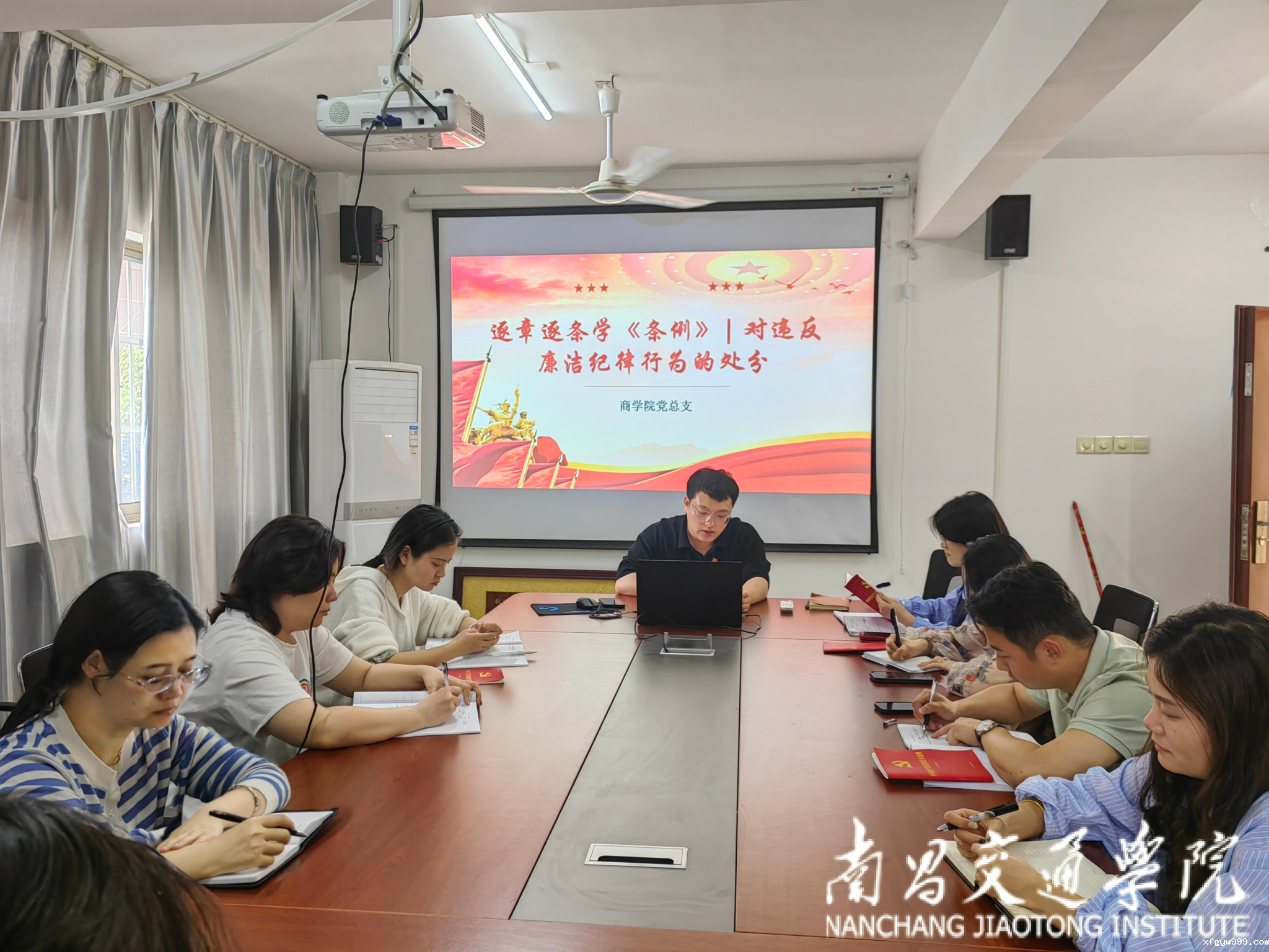学院党总支书记黄昊逐章逐条领学《中国共产党纪律处分条例》总则中纪律处分运用规则的内容。黄昊指出,新修订的《条例》总则集中体现了新时代新征程上全面加强党的纪律建设的新任务新要求,全体党员要准确把握《条例》总则的重点,带动各项纪律的学习理解,切实维护纪律的刚性、严肃性。