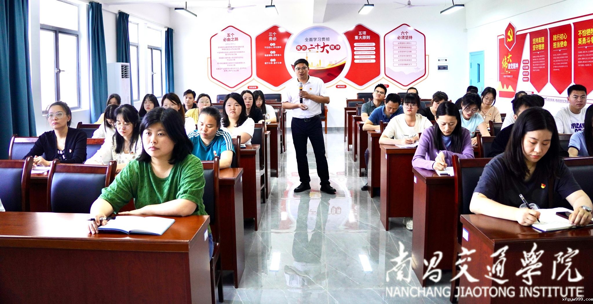 尧刚华简要介绍了在全体党员中开展党纪学习教育的背景、目的及意义,从准确把握《条例》主旨内容、学习贯彻《条例》要求、对标对齐抓好细化落实、以严明的纪律推进党的自我革命四个方面进行详细阐述。他指出,学党纪是终身必修课,不仅党员干部要以身作则、率先垂范,增强政治警觉性和政治鉴别力,教师党员也要时刻自重自省、自警自励,知敬畏、存戒惧、守底线,自觉用党纪约束自己的言行。他鼓励党员、干部践行“读、讲、看、做”“四字要领”,做到让学习党纪的过程成为强化党章党规党纪意识、锤炼忠诚干净担当政治品格的过程。